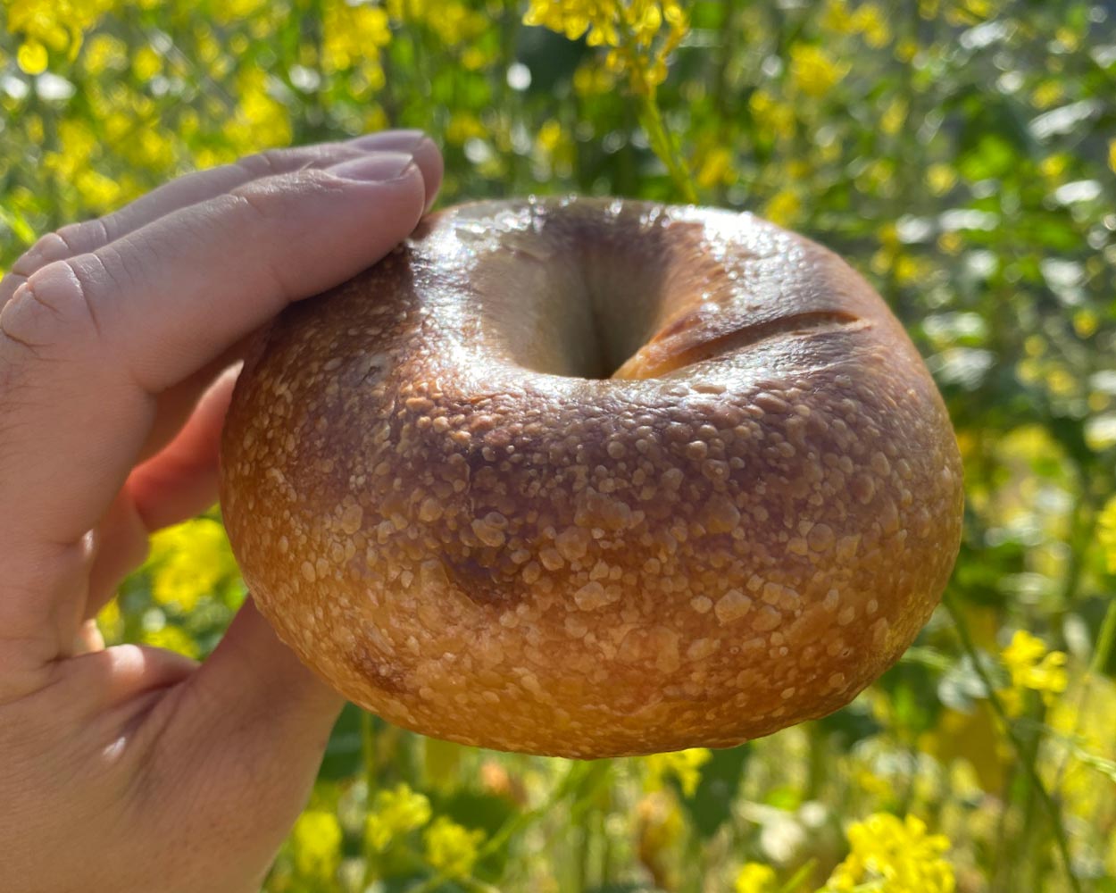 - Bake – If using a sheet pan, bake the bagels at 450℉ (232℃) for 12-16 minutes or until golden brown. If using bagel boards, bake the bagels at 450℉ (232℃) on the boards for 5 minutes. At the end of the 5 minutes, transfer the bagels to a sheet pan by flipping them off the boards so that the bagels are face up. Continue baking for another 10-14 minutes or until golden brown.