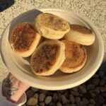These English muffins are a twist on the classic. They’re tangy and chewy and great for breakfast – perfect toasted with butter, jam, or your favorite toppings!